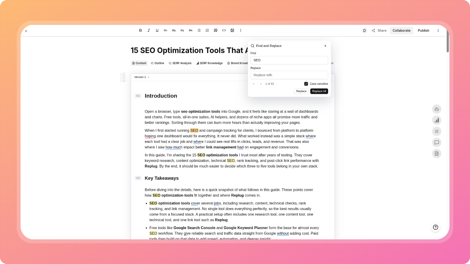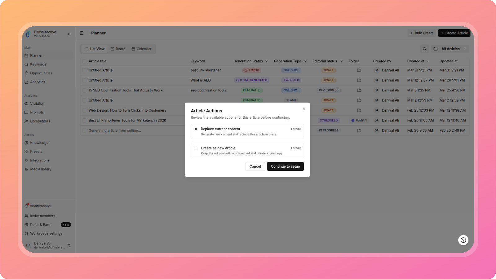 For each opportunity, you can use the Content Refresh option to apply suggested improvements directly to the blog.