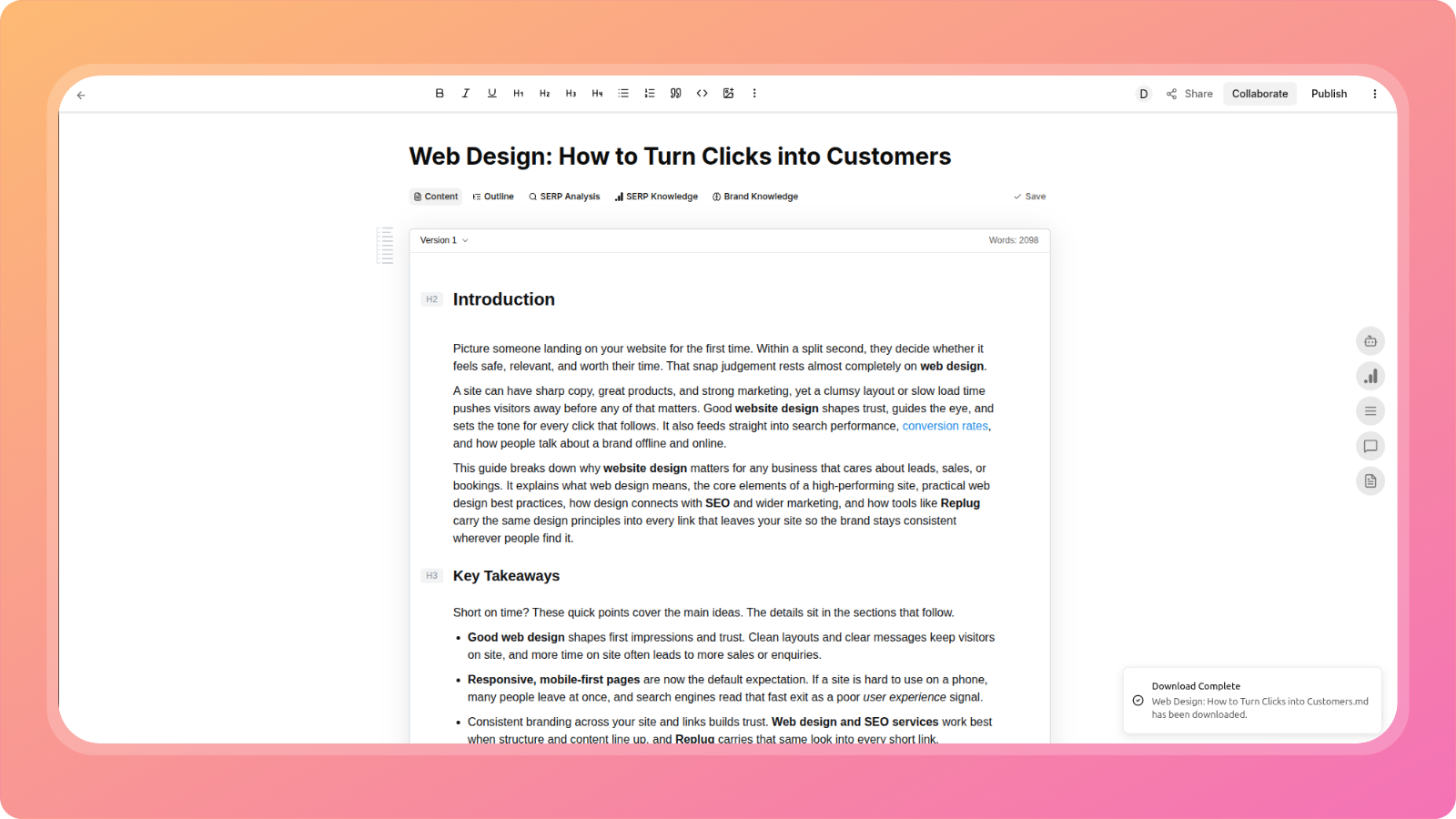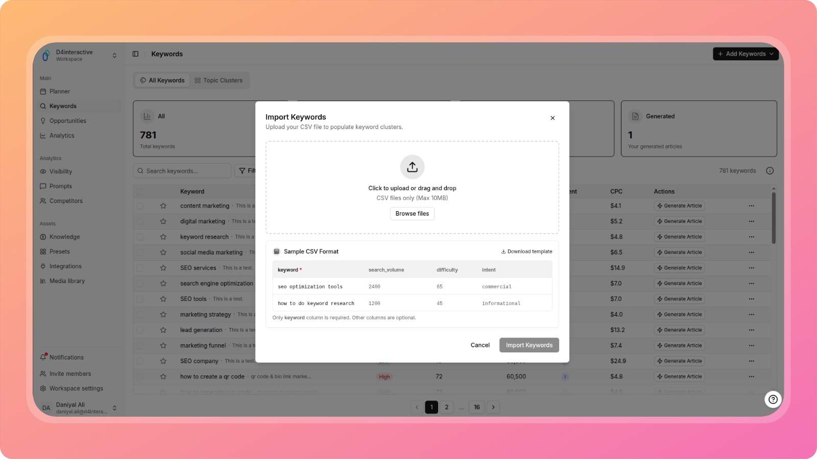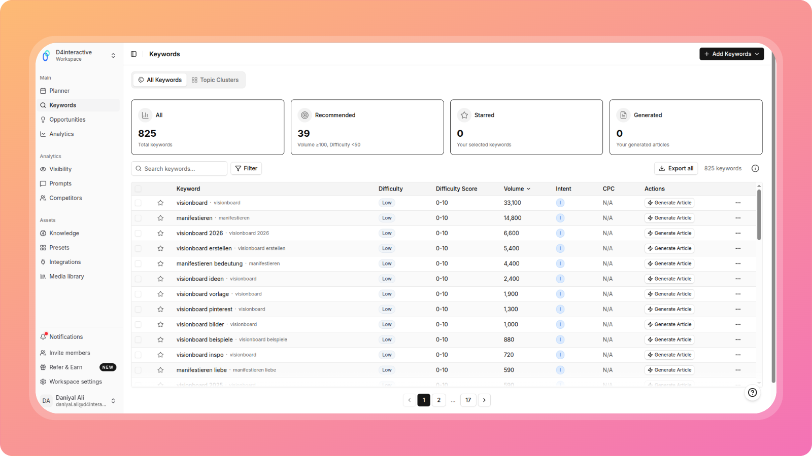 - Generation Status in Topic Clusters - Article generation status is now visible directly in the Topic Cluster view, making it easier to track content production progress.