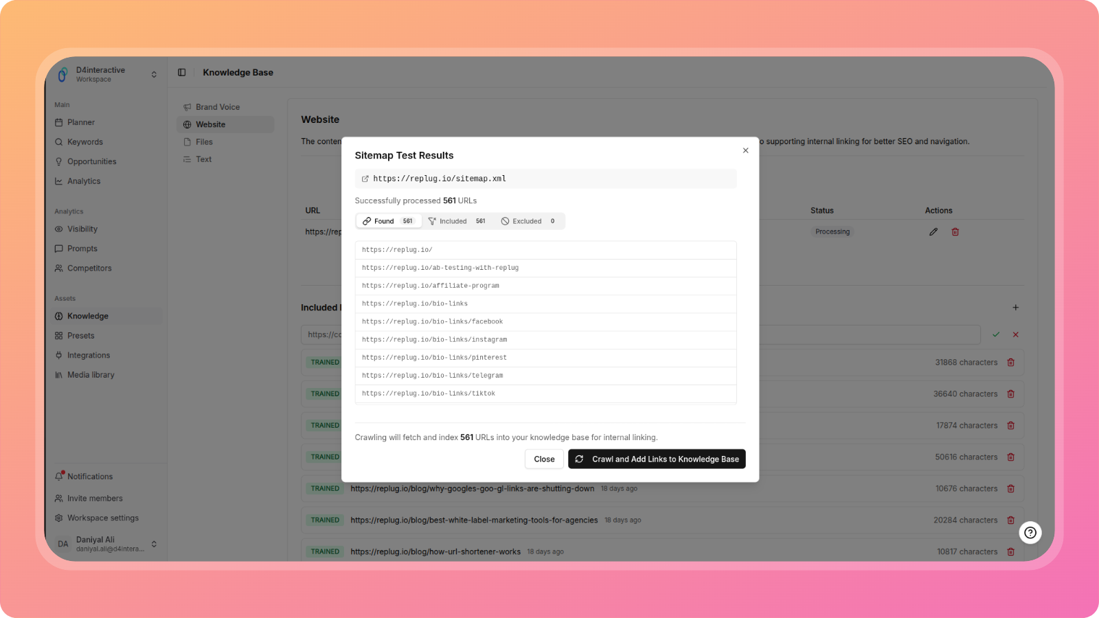 - Better Generation Progress Tracking - The brand knowledge analysis progress tracker now accurately reflects backend completion status instead of using estimated timing.